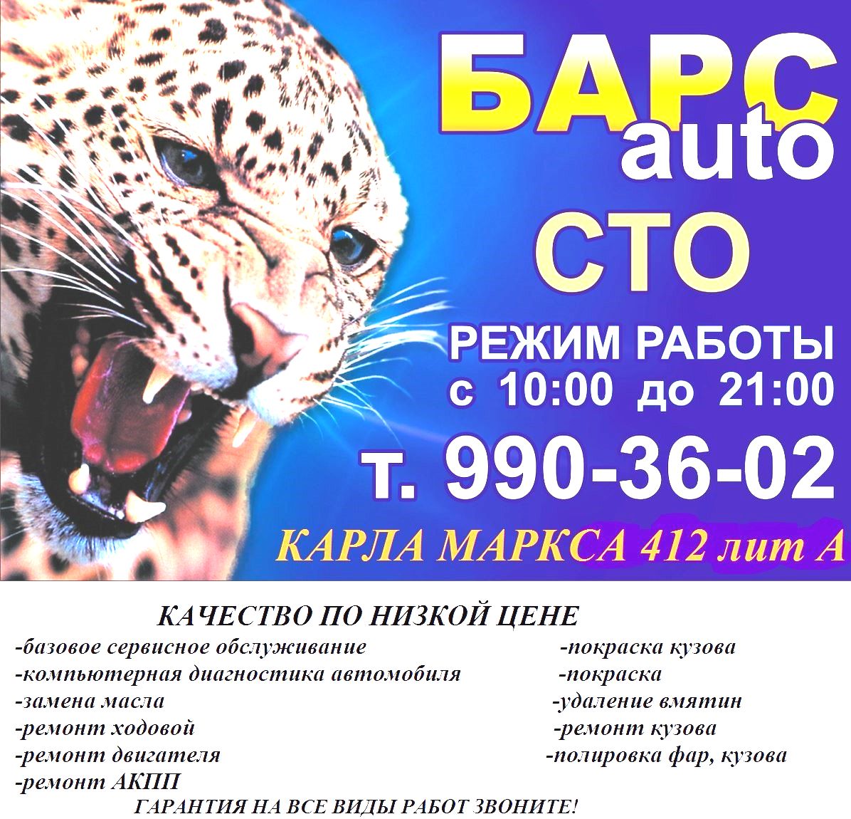 🛠 Адрес, телефон автосервиса и 1 отзыв о «БАРСauto».