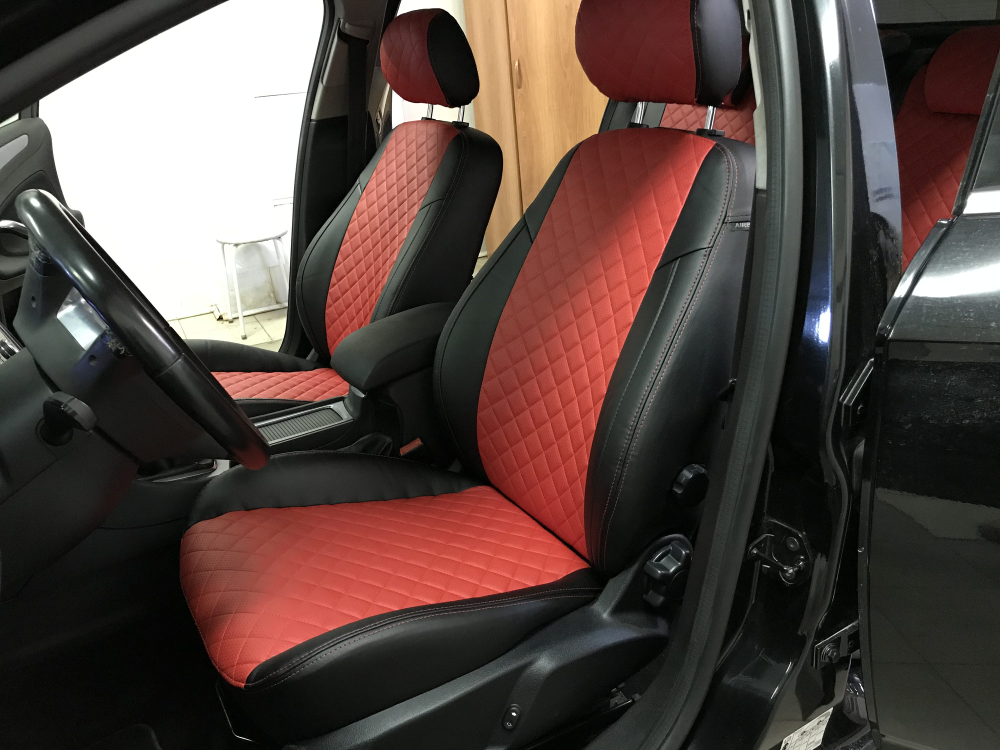- при желании делаю подшив чехлов к родной обивки, не повреждая ее. Достигая при этом эффекта перетяжки.