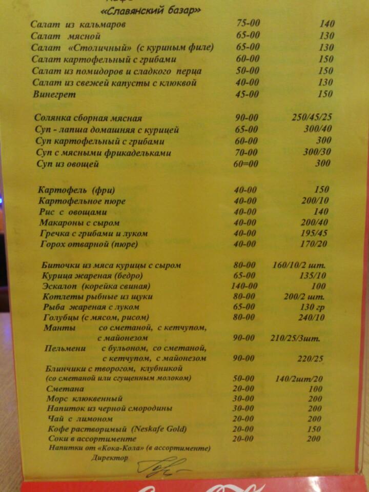 🍴 Адрес, телефон, часы работы и 1 отзыв о «Кафе Славянский базар».