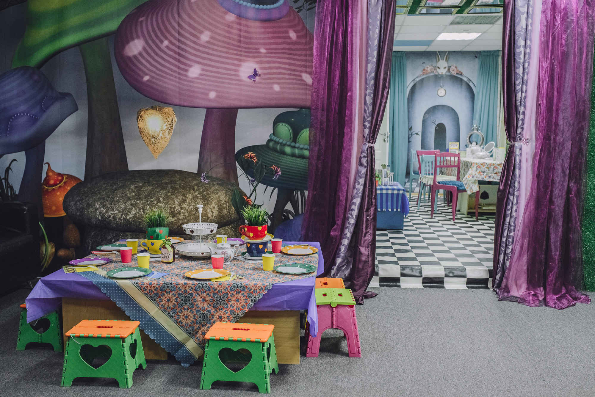 Уникальное пространство для детского праздника Crazy Room "Кроличья нора" отлично подойдет для яркого мероприятия!