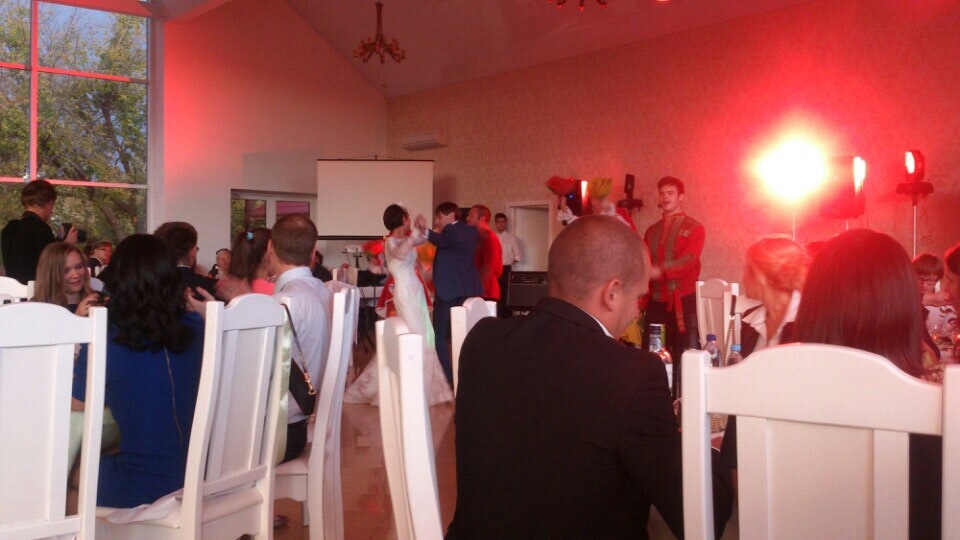 Большая территория, озеро, недалеко от города, различные залы. Тут хорошо проводить свадьбы с выездной регистрацией